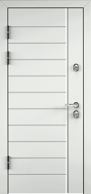 Эта белоснежная входная дверь с линиями №30 станет стильным и надежным элементом для любого интерьера. Благодаря отделке из панелей МДФ с ПВХ-покрытием, дверь выглядит элегантно и обладает высокой устойчивостью к внешним повреждениям. Внешний вид дверного полотна дополнен утонченными линиями, что придает ей современный, лаконичный вид. Прочный каркас из профильных труб 50х25 мм и лист металла толщиной 2 мм обеспечивают отличную защиту и долгий срок службы. Два контура резинового уплотнителя эффективно защищают от шума и холода, создавая комфорт в помещении. Замки Просам и Мосрентген с тремя ригелями гарантируют надежную безопасность. Дополнительно можно заказать зеркала, стеклопакеты и кованые элементы, что делает дверь универсальной для разных дизайнерских решений. Квартирная дверь входная белоснежного цвета с линиями №30 от производителя: быстрое изготовление и монтаж в Чехове, индивидуальные размеры, широкий выбор материалов и фурнитуры, официальная гарантия до 10 лет.