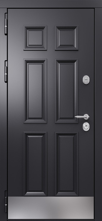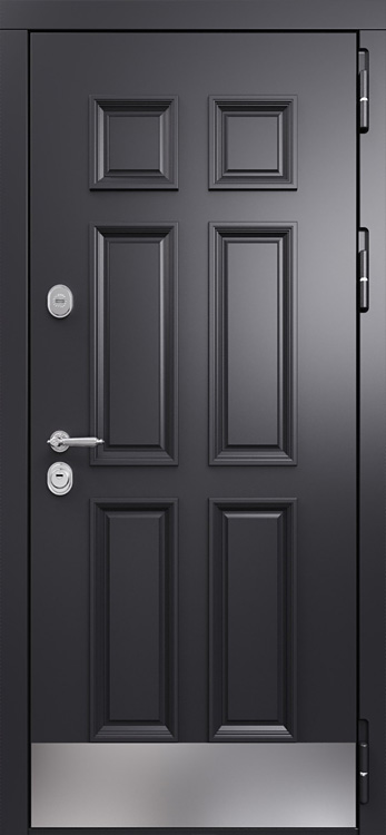 Входная дверь с МДФ №566 создана для тех, кто ценит прочность металла и уютный внешний вид в одном решении. Она одинаково хорошо вписывается в частный дом, квартиру или офис, подчеркивая солидность пространства и обеспечивая надежную защиту. Каркас и полотно собраны из профильных труб, усиленных ребрами жесткости, а стальной лист толщиной 2 мм гарантирует устойчивость к взлому и длительный срок службы. С обеих сторон дверь облицована МДФ панелями с ПВХ-покрытием, что делает поверхность более устойчивой к истиранию и мелким повреждениям, сохраняя привлекательность даже при интенсивной эксплуатации. Панели легко очищаются и не выгорают на солнце, благодаря чему дверь подходит и для уличной установки. Два контура уплотнения надежно защищают от сквозняков и посторонних запахов, а при необходимости можно дополнительно усилить конструкцию тепло- и шумоизоляцией. Модель №566 сочетает в себе сдержанный дизайн и функциональность, делая ее практичным выбором для самых разных помещений. Входная дверь с МДФ №566 от производителя: быстрое изготовление и монтаж в Чехове, индивидуальные размеры, широкий выбор материалов и фурнитуры, официальная гарантия до 10 лет.