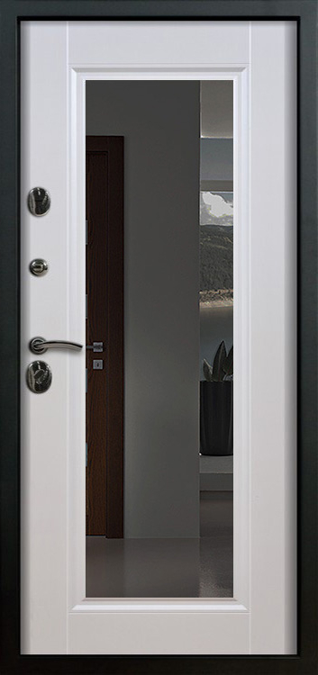 Металлическая входная дверь с зеркалом внутри №1 создана как универсальное решение для дома, квартиры или офиса, где важны и безопасность, и комфорт. Каркас выполнен из прочной профильной трубы с металлическим листом толщиной 2 мм и рёбрами жёсткости, что обеспечивает устойчивость к механическим воздействиям и долгий срок службы. Снаружи дверь покрыта порошковой окраской, стойкой к атмосферным влияниям и царапинам, а изнутри отделана МДФ с ПВХ-покрытием, которое сохраняет свежий вид даже при интенсивной эксплуатации. Встроенное зеркало превращает полотно в практичный элемент интерьера: оно визуально расширяет пространство прихожей и избавляет от лишних предметов мебели. Два контура уплотнителей защищают от пыли и сквозняков, а блокираторы усиливают общую надёжность конструкции. Модель не оснащена терморазрывом, зато отличается продуманным балансом практичности и доступной цены, оставаясь удобным вариантом для повседневного использования. Металлическая входная дверь с зеркалом внутри №1 от производителя: быстрое изготовление и монтаж в Чехове, индивидуальные размеры, широкий выбор материалов и фурнитуры, официальная гарантия до 10 лет.