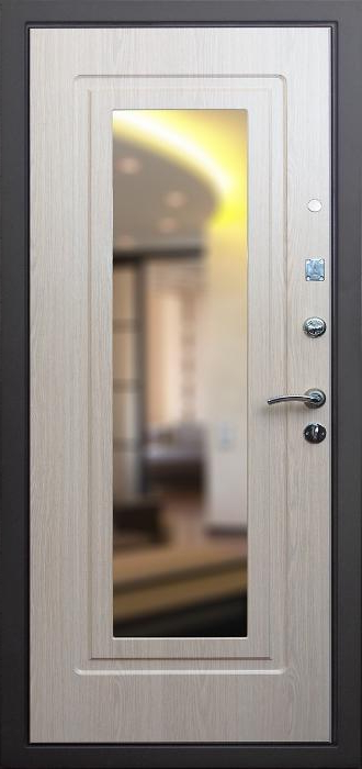 Эта модель создана для тех, кто ценит не только прочность, но и практичность в повседневном использовании. Стальной каркас из профильной трубы и лист металла толщиной 2 мм с рёбрами жёсткости формируют надёжную основу, способную выдерживать серьёзные нагрузки. Снаружи дверь защищена порошковым покрытием, которое устойчиво к влаге, солнцу и механическим повреждениям, а изнутри отделана МДФ-накладкой, придающей интерьеру уют и аккуратность. В центре конструкции внимание привлекает зеркало — удобная деталь, которая избавляет от необходимости в дополнительном настенном аксессуаре и одновременно делает пространство визуально просторнее. Именно здесь название модели — металлическая дверь с зеркалом в дом №2 — обретает своё значение, сочетая функциональность с эстетикой. Для повышения безопасности предусмотрены два замка российского производства с независимыми системами запирания, а также блокираторы. Два контура уплотнителя защищают от сквозняков и пыли, а возможность выбрать направление открывания делает установку универсальной. Металлическая дверь с зеркалом в дом №2 от производителя: быстрое изготовление и монтаж в Чехове, индивидуальные размеры, широкий выбор материалов и фурнитуры, официальная гарантия до 10 лет.