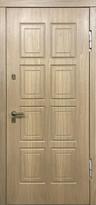 Дверь входная в частный дом №44 сочетает в себе надёжность стальной основы и практичность декоративной отделки. Каркас и полотно из профильной трубы с листом металла толщиной 2 мм обеспечивают устойчивость к нагрузкам, а рёбра жёсткости повышают общую прочность конструкции. В коробке и полотне предусмотрен терморазрыв, который предотвращает промерзание и помогает сохранять тепло внутри помещения, что особенно важно для частных домов и коттеджей. Снаружи и внутри дверь облицована МДФ-накладками, материалом, устойчивым к мелким повреждениям и удобным в уходе, благодаря чему изделие долго сохраняет презентабельный вид. Двойной контур уплотнителей блокирует сквозняки и влагу, создавая дополнительный комфорт. Для безопасности установлены два замка — сувальдный Просам и цилиндровый Мосрентген, оба с трёхригельной системой. Модель легко адаптируется под пожелания заказчика: можно изменить отделку или добавить декоративные элементы, превращая дверь в индивидуальное решение для дома, офиса или квартиры. Дверь входная в частный дом №44 от производителя: быстрое изготовление и монтаж в Чехове, индивидуальные размеры, широкий выбор материалов и фурнитуры, официальная гарантия до 10 лет.