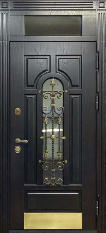 Парадная металлическая дверь с фрамугой №1 — это элегантное и надежное решение для вашего входа. Внешняя и внутренняя отделка из МДФ придает двери не только привлекательный вид, но и устойчивость к внешним повреждениям, что гарантирует долговечность и сохранение первоначального вида. Каркас из профильной трубы и металл толщиной 2 мм обеспечивают прочность и надежность конструкции. Наличие фрамуги позволяет пропускать больше света, создавая ощущение простора. Для дополнительной безопасности предусмотрены блокираторы и замки с тремя ригелями от надежных производителей, таких как Просам и Мосрентген. Варианты отделки, возможность добавления стеклопакетов, зеркала или кованых элементов позволяют адаптировать дверь под любой стиль интерьера. Парадная металлическая дверь с фрамугой №1 от производителя: быстрое изготовление и монтаж в Чехове, индивидуальные размеры, широкий выбор материалов и фурнитуры, официальная гарантия до 10 лет.