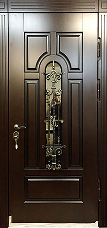 Входная дверь со стеклом и ковкой для загородного дома №16 создана для тех, кто ценит гармонию практичности и декоративного стиля. Каркас из профильной трубы и стальной лист толщиной 2 мм обеспечивают надежную защиту, а декоративная ковка со стеклянными вставками делает вход не только прочным, но и выразительным. Панели МДФ с ПВХ-покрытием используются с обеих сторон: они устойчивы к влаге и перепадам температуры, не теряют формы и сохраняют аккуратный вид на протяжении многих лет. Два контура уплотнения повышают комфорт, защищая дом от сквозняков, а при желании можно добавить дополнительную шумо- и теплоизоляцию. Входная дверь со стеклом и ковкой для загородного дома №16 легко адаптируется под размеры проема и может быть дополнена современными замками или другими декоративными элементами, чтобы подчеркнуть уникальность фасада. Входная дверь со стеклом и ковкой для загородного дома №16 от производителя: быстрое изготовление и монтаж в Чехове, индивидуальные размеры, широкий выбор материалов и фурнитуры, официальная гарантия до 10 лет.