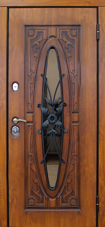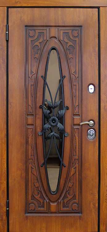 В частном доме дверь должна быть не просто барьером, а настоящей визитной карточкой, и именно эту задачу решает входная дверь со стеклом и ковкой №23. Натуральное дерево в отделке придает ей благородный и теплый вид, а декоративная ковка превращает конструкцию в выразительный элемент архитектуры. Внутри скрыт стальной каркас с листом металла 1,5 мм и противосъёмными блокираторами, что обеспечивает прочность и устойчивость к взлому. Особого внимания заслуживает наличие терморазрыва как в коробке, так и в полотне: он защищает от промерзания, исключает появление конденсата и помогает сохранять тепло зимой и прохладу летом. Тройной контур магнитного уплотнения усиливает герметичность и снижает уровень уличного шума, а пенопласт повышенной плотности в качестве наполнителя добавляет теплоизоляции. Входная дверь в частный дом со стеклом и ковкой №23 гармонично сочетает надежность и эстетику, позволяя владельцу адаптировать её под стиль фасада с помощью дополнительных декоративных решений. Входная дверь в частный дом со стеклом и ковкой №23 от производителя: быстрое изготовление и монтаж в Чехове, индивидуальные размеры, широкий выбор материалов и фурнитуры, официальная гарантия до 10 лет.