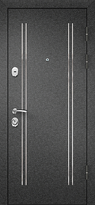 Дверь металлическая в порошке №59 — надежное решение для квартир, офисов и подъездов, где требуется прочная конструкция и аккуратный внешний вид. Снаружи используется молотковое напыление, которое не боится механических повреждений и долго сохраняет насыщенный цвет, а внутренняя поверхность отделана ламинатом, создающим ощущение уюта и подчеркивающим практичность модели. Каркас собран из профильной трубы 50х25 мм, усилен ребрами жесткости и листом стали толщиной 2 мм, что придает двери устойчивость к силовым нагрузкам. Дополнительную защиту обеспечивают два замка: верхний сувальдный «Просам» и нижний цилиндровый «Мосрентген», оба с тремя ригелями. Два контура резинового уплотнения помогают справляться со сквозняками, а при желании дверь можно укомплектовать шумо- и теплоизоляцией. Модель №59 легко адаптируется под любые требования: возможна комбинация отделок, установка зеркала, стеклопакета или декоративной ковки. Дверь металлическая в порошке №59 от производителя: быстрое изготовление и монтаж в Чехове, индивидуальные размеры, широкий выбор материалов и фурнитуры, официальная гарантия до 10 лет.