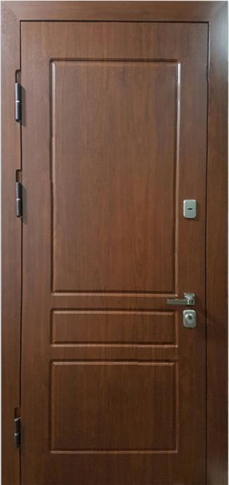 Дверь входная уличная с терморазрывом №41 – это надежная и стильная модель, идеально подходящая для частных домов и коттеджей. Конструкция двери с терморазрывом в коробке и полотне эффективно защищает от холодного воздуха и влаги, обеспечивая стабильный микроклимат внутри помещения. Внешняя и внутренняя отделка из панелей МДФ с ПВХ покрытием не только привлекает внимание своим современным дизайном, но и обеспечивает отличную стойкость к механическим повреждениям, а также долговечность. Металлическое полотно толщиной 1,5 мм с ребрами жесткости из профильных труб гарантирует высокую прочность, а также надежную защиту от взлома. Шумо- и теплоизоляция из пенопласта повышенной плотности создают дополнительный комфорт. Дверь оснащена высококачественными замками Kale Kilit с тремя ригелями, что обеспечивает высокий уровень безопасности. Дверь входная уличная с терморазрывом №41 от производителя: быстрое изготовление и монтаж в Чехове, индивидуальные размеры, широкий выбор материалов и фурнитуры, официальная гарантия до 10 лет.