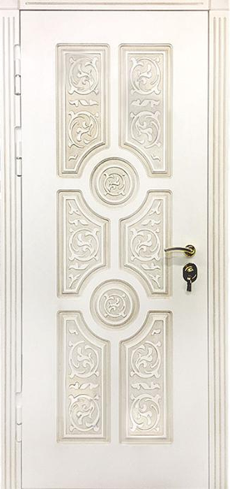 Дверь уличная с терморазрывом №49 — это надежное решение для частных домов и коттеджей, которое обеспечит комфорт и защиту от внешних факторов. С терморазрывом в коробке и полотне, эта дверь исключает проникновение холода, сохраняя тепло в доме и предотвращая появление конденсата. Внешняя и внутренняя отделка выполнена с использованием накладки МДФ, что придает двери привлекательный вид и долговечность, стойкость к механическим повреждениям и атмосферным воздействиям. Ковка, как элемент декора, добавляет изысканности и подчеркивает индивидуальность. Металлическая конструкция с толщиной полотна 1,5 мм и каркасом из профильных труб гарантирует прочность и устойчивость. Уплотнение с тремя контурами магнитного герметика и высокая шумо- и теплоизоляция на основе пенопласта делают дверь идеальной для использования в уличных условиях. Возможность замены замков и добавления стеклопакетов или кованых элементов позволяет индивидуализировать дверное решение под любые потребности. Дверь уличная с терморазрывом №49 от производителя: быстрое изготовление и монтаж в Чехове, индивидуальные размеры, широкий выбор материалов и фурнитуры, официальная гарантия до 10 лет.