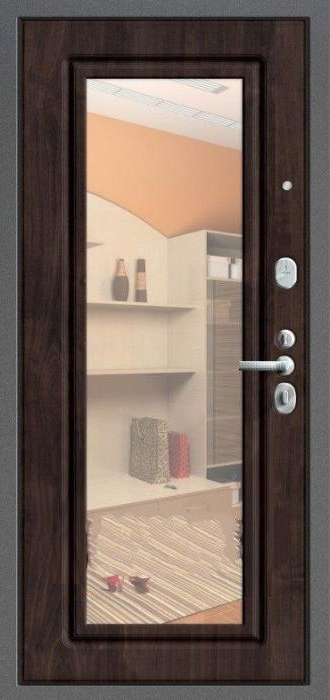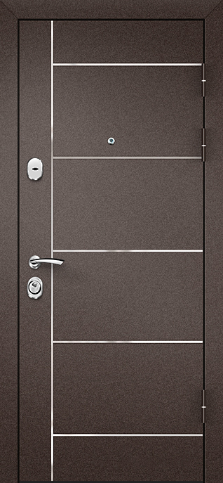 Каркас из профильной трубы и стальной лист толщиной 2 мм обеспечивают прочность конструкции и устойчивость к взлому, а два контура уплотнителей защищают помещение от сквозняков и уличного шума. Входная дверь в квартиру с зеркалом №10 выделяется сочетанием практичного молоткового напыления снаружи и аккуратной плиты МДФ внутри. Такое покрытие не боится механических повреждений и перепадов температуры, долго сохраняя первоначальный вид. Зеркало на внутренней стороне делает прихожую светлее и визуально просторнее, заменяя полноценное настенное. Дополнительные блокираторы и система ребер жёсткости усиливают надежность. Возможность изготовления в любых размерах позволяет адаптировать модель под особенности квартиры, офиса или частного дома, сохранив баланс между эстетикой и безопасностью. Входная дверь в квартиру с зеркалом №10 от производителя: быстрое изготовление и монтаж в Чехове, индивидуальные размеры, широкий выбор материалов и фурнитуры, официальная гарантия до 10 лет.