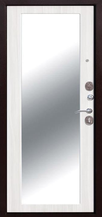 Сдержанный белый цвет придаёт модели лёгкость и визуальную чистоту, а зеркало внутри делает её особенно удобной для городских квартир и офисов, где важна каждая деталь интерьера. Белая входная дверь в квартиру с зеркалом №50 сочетает в себе функциональность и надёжность: прочный стальной каркас из профильной трубы и лист металла толщиной 2 мм обеспечивает защиту, рёбра жёсткости усиливают конструкцию, а два контура уплотнителей помогают снизить проникновение сквозняков и шума. Отделка из МДФ-накладок устойчива к царапинам и не теряет аккуратного вида даже при активной эксплуатации. Зеркальная вставка экономит пространство и делает коридор светлее, а наличие двух замков — сувальдного Просам и цилиндрового Мосрентген — обеспечивает дополнительный уровень безопасности. Белая входная дверь в квартиру с зеркалом №50 от производителя: быстрое изготовление и монтаж в Чехове, индивидуальные размеры, широкий выбор материалов и фурнитуры, официальная гарантия до 10 лет.