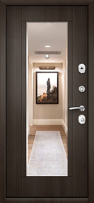 Входная дверь с зеркалом внутри №71 удачно сочетает практичность и надежность, оставаясь при этом стильным элементом интерьера. Она подходит для квартиры, офиса или частного дома, создавая удобство в быту и подчеркивая статус владельца. Внешняя сторона покрыта порошковой окраской, устойчивой к царапинам и перепадам температуры, что гарантирует долговечность и сохранение привлекательного вида. Внутри установлена накладка из МДФ, которая придает поверхности уют и делает её гармоничной частью интерьера. Зеркало на внутренней стороне экономит пространство прихожей и добавляет ей визуальной глубины. Каркас из профильной трубы с листом стали толщиной 2 мм и ребрами жесткости обеспечивает прочность и устойчивость ко взлому. Два контура уплотнителей создают дополнительную защиту от сквозняков и пыли, а терморазрыв в коробке и полотне предотвращает промерзание зимой. Для безопасности предусмотрены два замка российского производства с ригельными системами, при желании возможна замена на замки премиальных марок или установка умных электронных решений. Дверь входная с зеркалом внутри №71 от производителя: быстрое изготовление и монтаж в Чехове, индивидуальные размеры, широкий выбор материалов и фурнитуры, официальная гарантия до 10 лет.