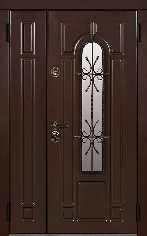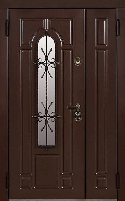 Эта металлическая двухстворчатая дверь с арочным стеклопакетом №15 представляет собой идеальный баланс между эстетикой и прочностью. Арочное стекло добавляет в её дизайн утончённость, а ковка в декоре придаёт изысканный, но в то же время крепкий и надёжный вид. Плита МДФ, используемая как для внешней, так и для внутренней отделки, не только сохраняет прекрасный внешний вид, но и устойчива к механическим повреждениям. Металлическая двухстворчатая дверь с арочным стеклопакетом №15 от производителя: быстрое изготовление и монтаж в Чехове, индивидуальные размеры, широкий выбор материалов и фурнитуры, официальная гарантия до 10 лет.
