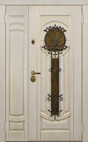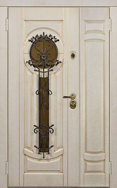 Двухстворчатая парадная дверь с ковкой и стеклом белая №30 — это сочетание красоты и надёжности. Конструкция из профильной трубы 50х25 мм и металлического листа толщиной 2 мм обеспечивает долговечность и стойкость к внешним воздействиям. Элементы ковки придают двери изысканный вид, а стеклопакет позволяет создать атмосферу лёгкости и прозрачности. Внешняя и внутренняя отделка выполнены из плиты МДФ, что делает дверь не только привлекательной, но и устойчивой к механическим повреждениям. Для дополнительной герметичности используются уплотнители с двумя контурами, а блокираторы обеспечат безопасность. Вариативность размеров и возможность добавления дополнительных опций, таких как шумо- и теплоизоляция, делают эту модель универсальной для установки в любом интерьере. Двухстворчатая парадная дверь с ковкой и стеклом белая №30 от производителя: быстрое изготовление и монтаж в Чехове, индивидуальные размеры, широкий выбор материалов и фурнитуры, официальная гарантия до 10 лет.