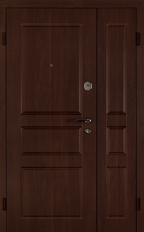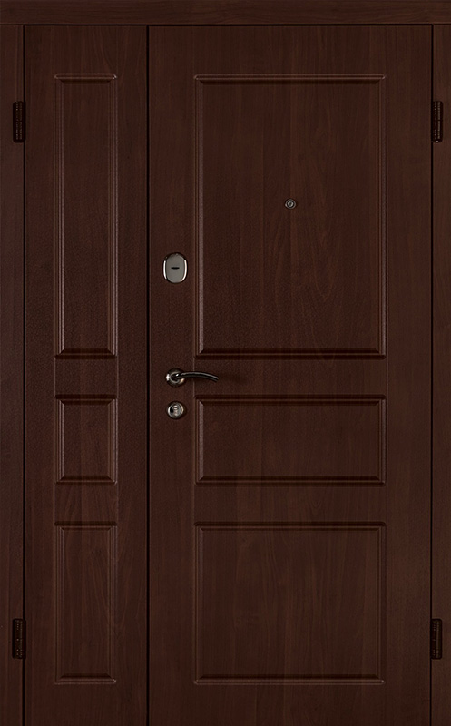 Коричневая входная полуторная дверь с филенчатой створкой №4 – это надежное и стильное решение для вашего дома или офиса. Внешняя и внутренняя отделка из МДФ с ПВХ обеспечивает долговечность и устойчивость к повреждениям, сохраняя при этом элегантный внешний вид. Прочные материалы конструкции, такие как профильная труба 50х25 мм и лист металла толщиной 2 мм, гарантируют стабильность и безопасность. Ребра жесткости из профильных труб 40х25 мм усиливают дверное полотно, а уплотнение с двумя контурами надежно защищает от внешних факторов. Несмотря на отсутствие терморазрыва, в двери реализованы терморазрывы в коробке и полотне, что помогает улучшить теплоизоляцию. Возможность выбора дополнительных опций, таких как шумоизоляция, делает эту дверь универсальной для различных условий эксплуатации. Коричневая входная полуторная дверь с филенчатой створкой №4 от производителя: быстрое изготовление и монтаж в Чехове, индивидуальные размеры, широкий выбор материалов и фурнитуры, официальная гарантия до 10 лет.