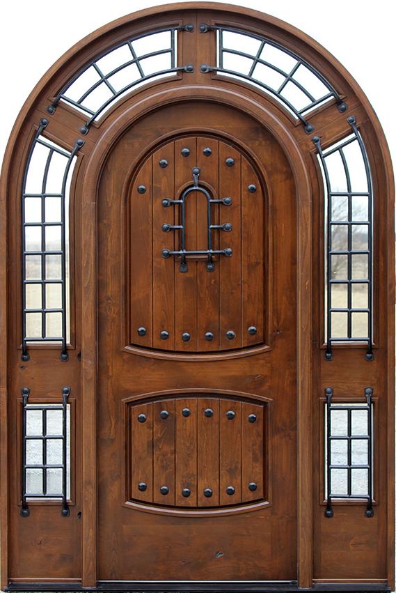Дверь с надежной фурнитурой и коваными элементами на стекле №18