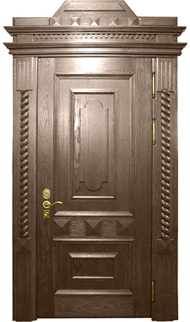 Входная дверь со стеклопакетом и патиной для загородного дома белая №29