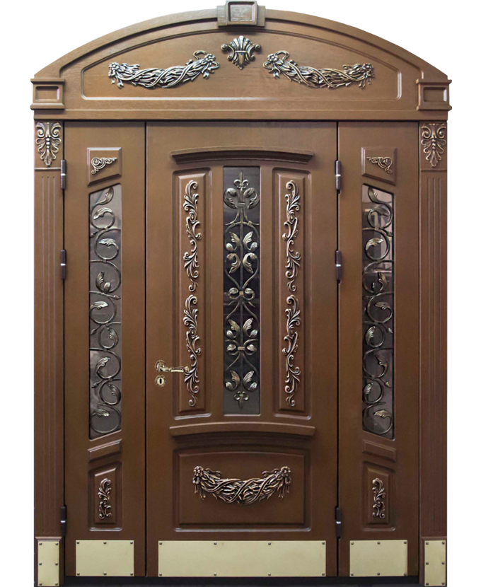 Арка придаёт входу особый характер и сразу выделяет дом среди соседних построек. Арочная входная дверь стеклопакет для загородного дома сочетает в себе статусность массивного дуба и современную практичность стеклопакета, который наполняет прихожую естественным светом и визуально облегчает массивное полотно. Стальной каркас с листом металла толщиной 2 мм и ребрами жёсткости обеспечивает надёжность, а два контура уплотнения защищают от сквозняков. Терморазрыв в коробке и полотне предотвращает промерзание, что особенно актуально для эксплуатации в загородных коттеджах. Натуральный дуб в отделке не только долговечен, но и устойчив к повреждениям, сохраняя презентабельный вид долгие годы. Такая дверь подчёркивает архитектурный стиль дома и позволяет совместить изысканность формы с практичностью современных технологий. Арочная входная дверь стеклопакет для загородного дома от производителя: быстрое изготовление и монтаж в Чехове, индивидуальные размеры, широкий выбор материалов и фурнитуры, официальная гарантия до 10 лет.